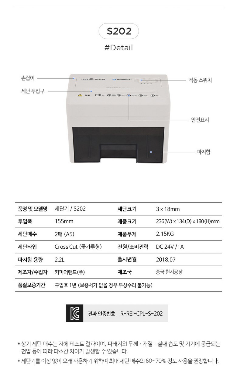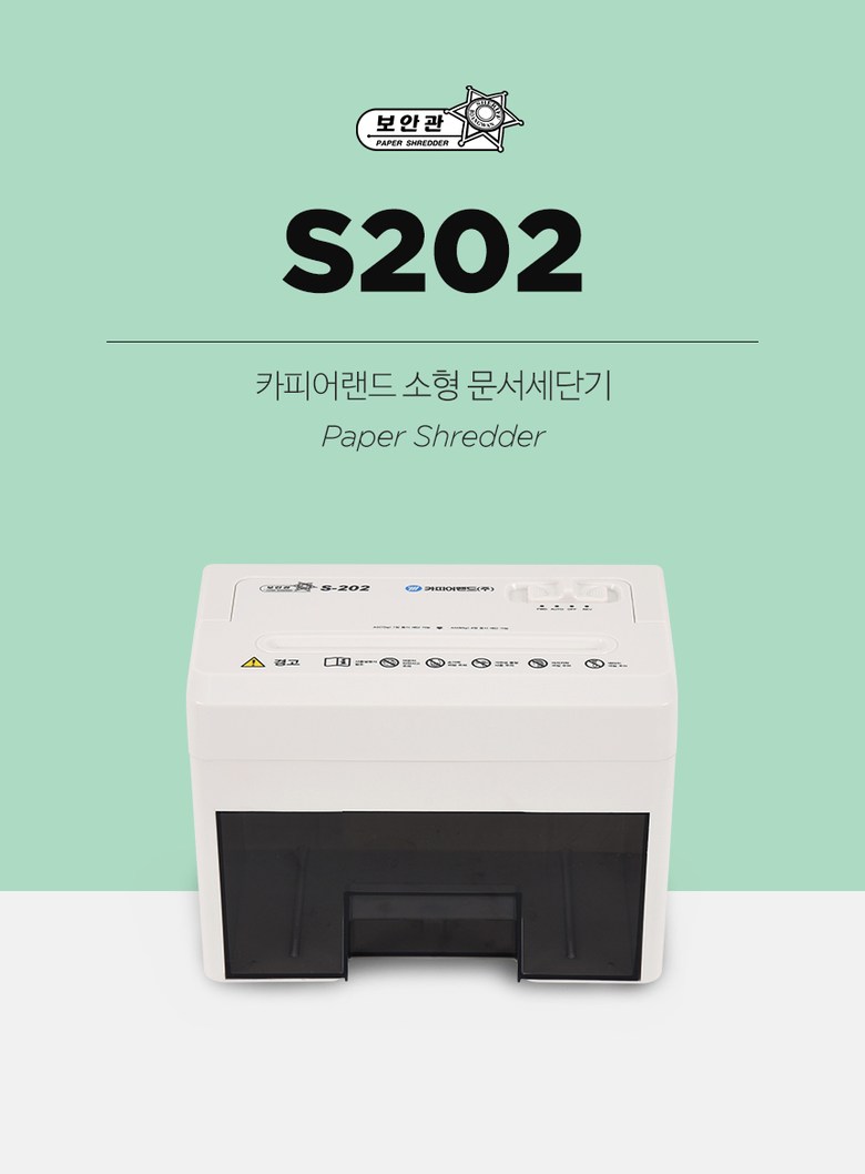 | 품명 및 모델명 | 카피어랜드 소형 꽃가루형 세단 문서세단기 보안관/S202 |