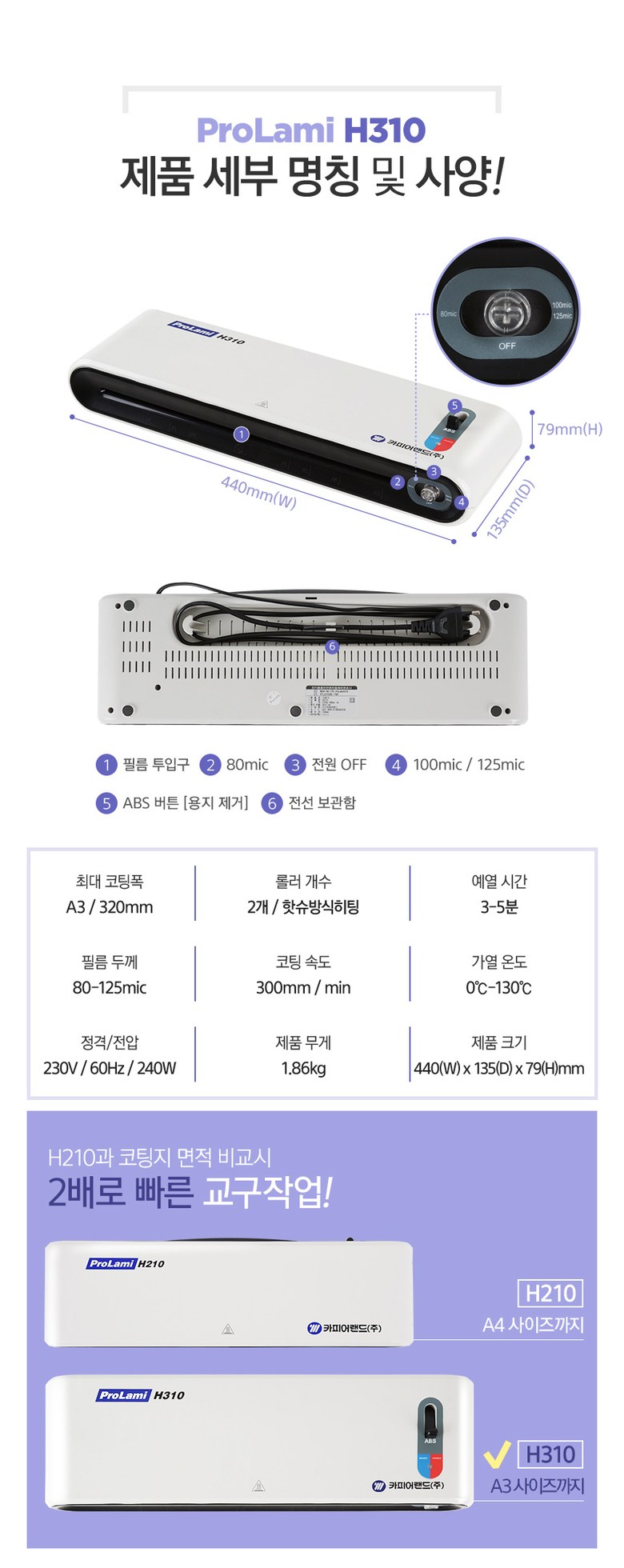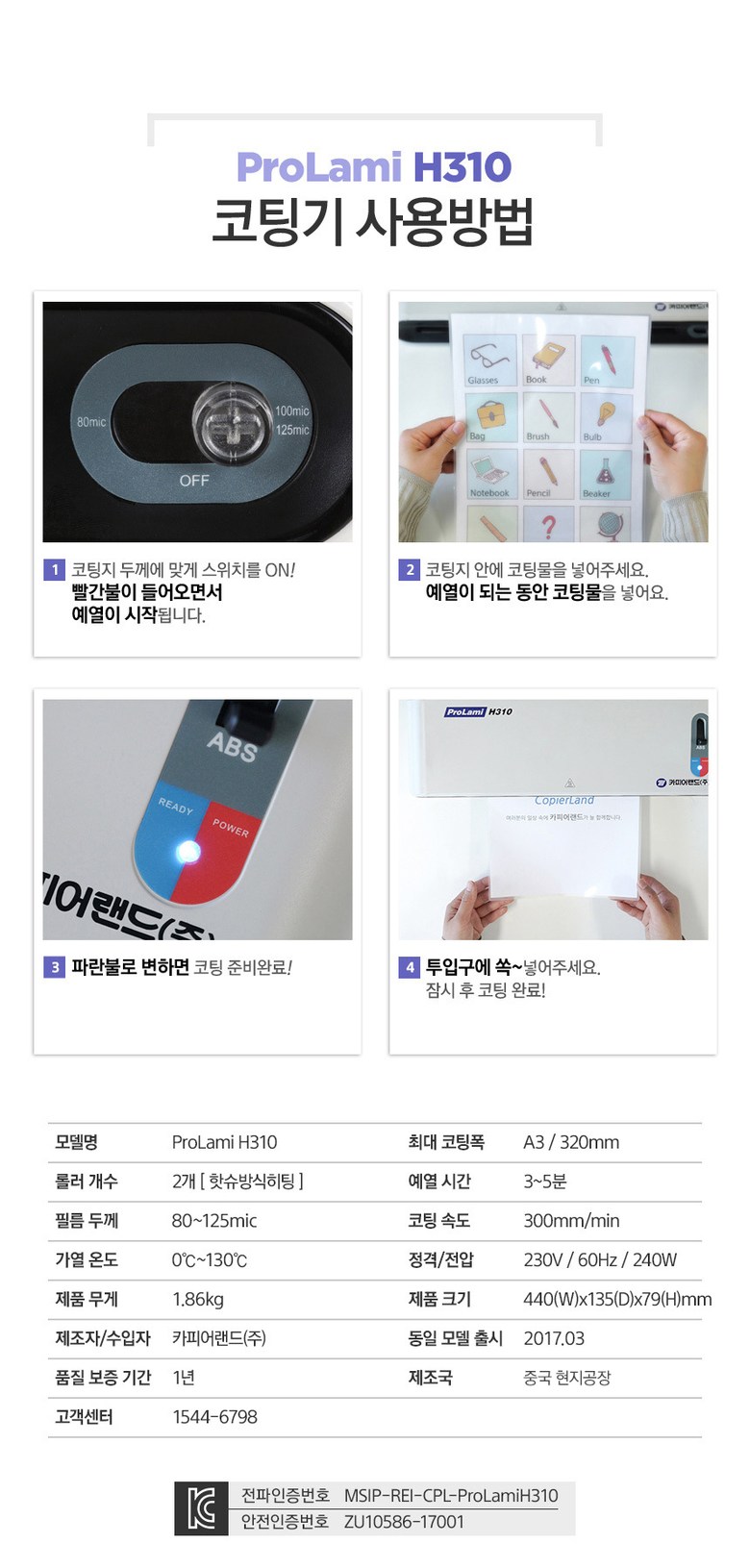 | 품명 및 모델명 | 카피어랜드 A3 코팅기/ProLami H310 |