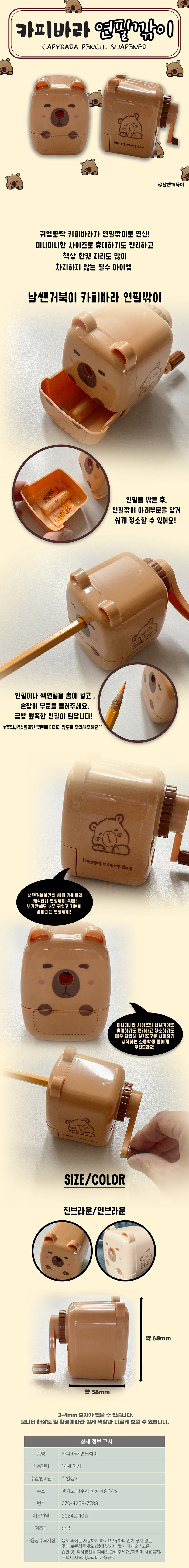 | 품명 및 모델명 | 행복한 카피바라 연필깎이-랜덤 |