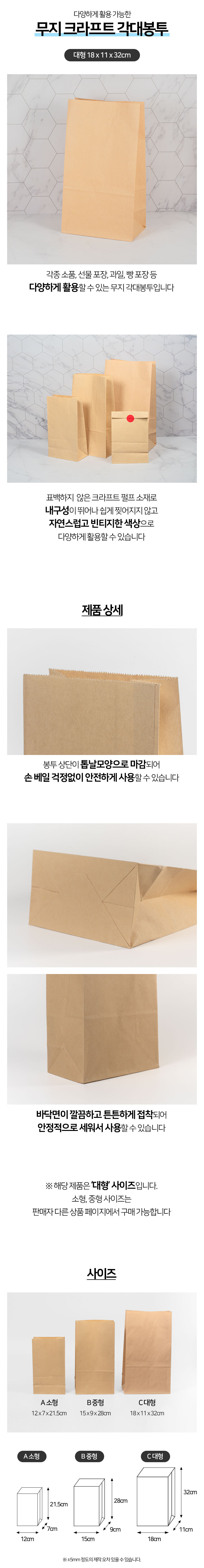 무지 크라프트 각대봉투 종이 봉투 18x11x32cm