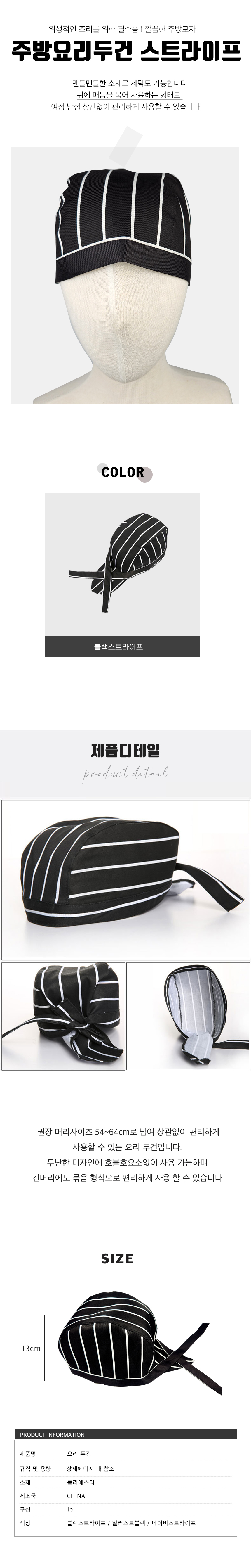 식당 주방 두건 위생 조리 모자 블랙스트라이프