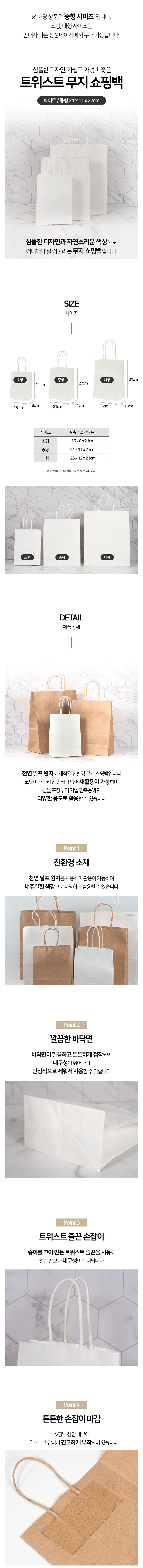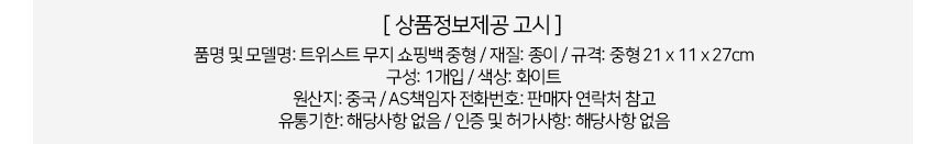 무지 종이 쇼핑백 화이트 중형 21x11x27cm