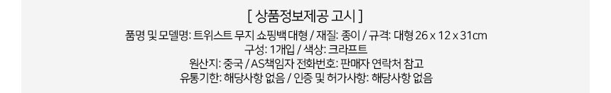 크라프트 무지 종이 쇼핑백 대형 26x12x31cm