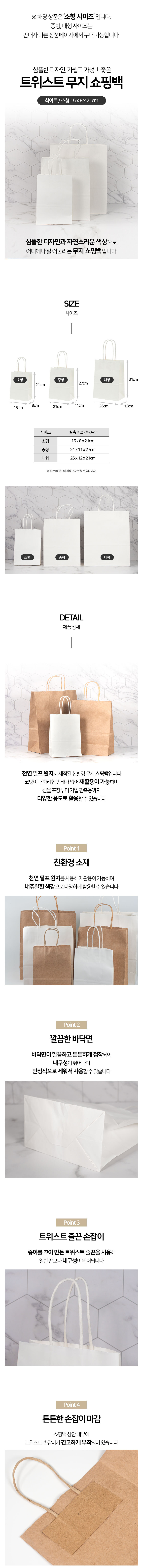 무지 종이 쇼핑백 화이트 소형 15x8x21cm