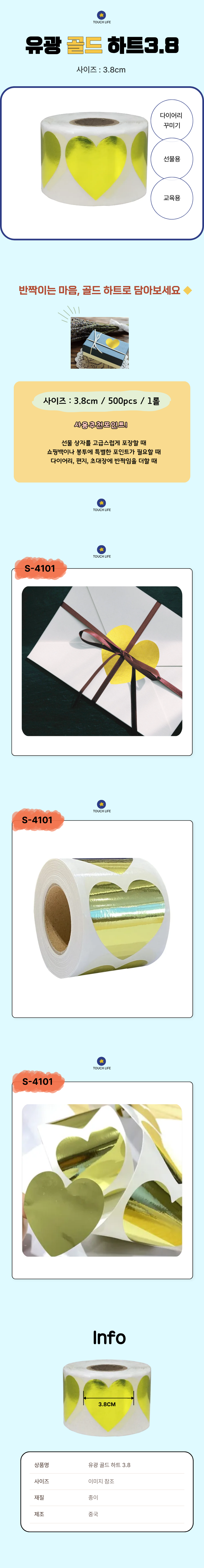 500매 유광 골드 하트 스티커 3.8cm S4101