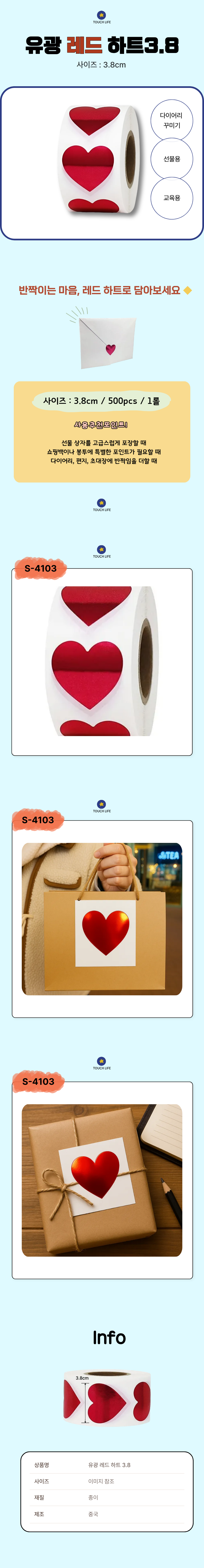 500매 유광 레드 하트 스티커 3.8cm S4103
