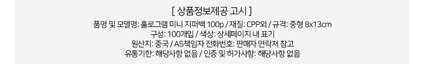 홀로그램 미니 지퍼백 포장용 100개입 8x13cm