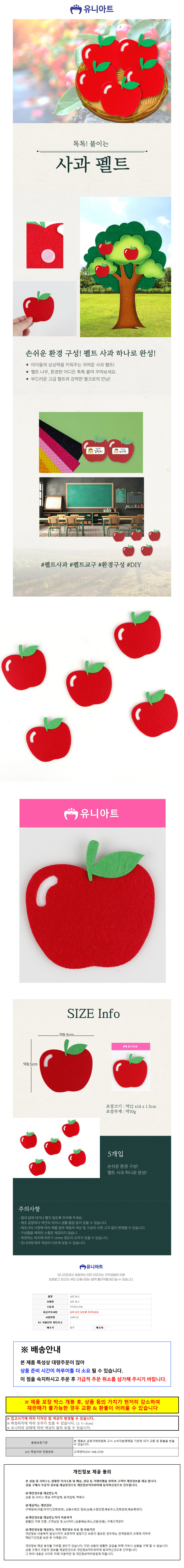 유니아트 어린이집환경판 (펠트) 사과 (5개입)