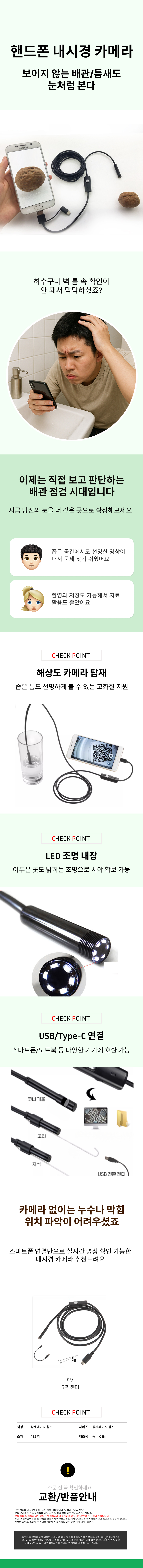 고화질 내시경 카메라 소형 배관 하수구 틈새 탐지기