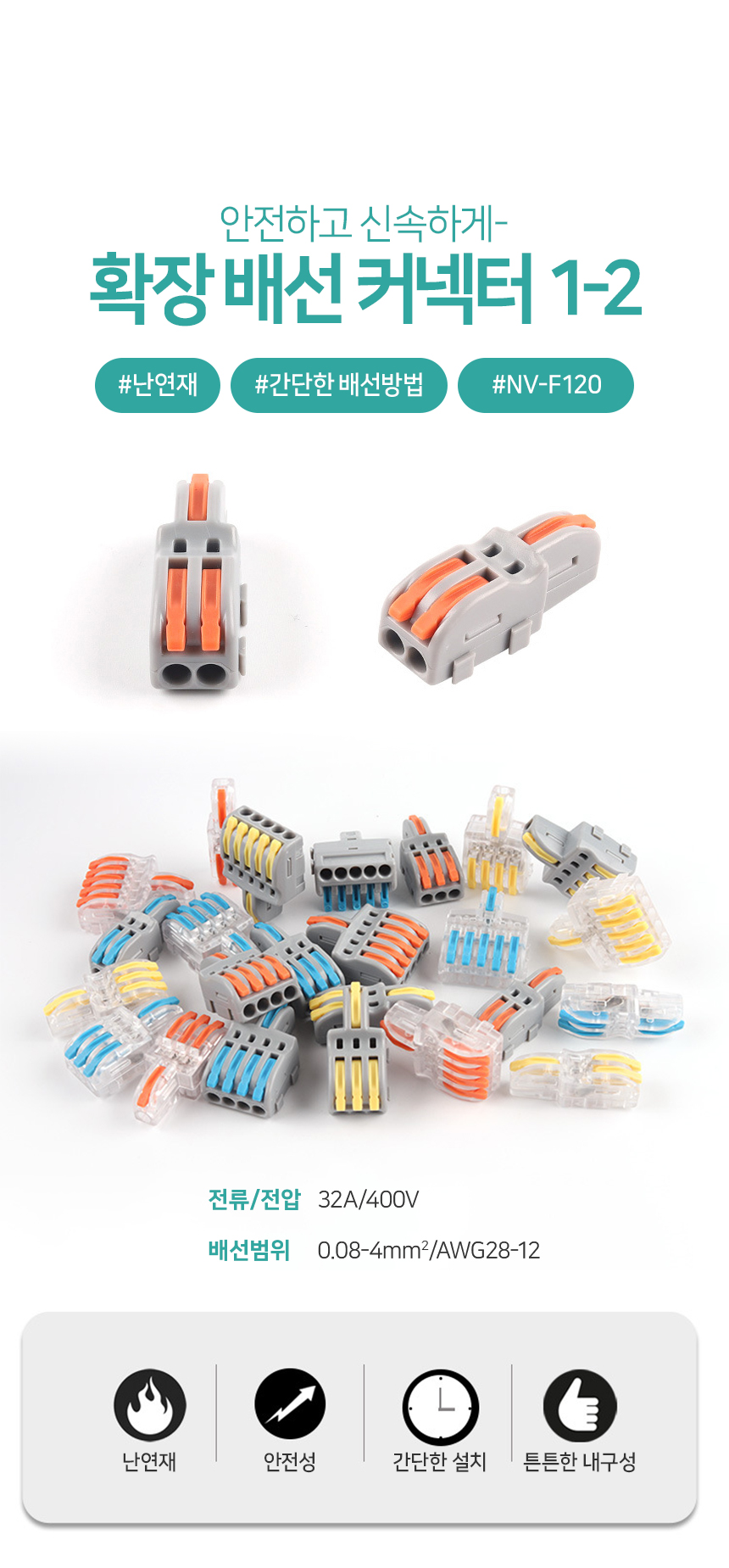 전기 배선 커넥터 확장형 전선 연결 1-2구