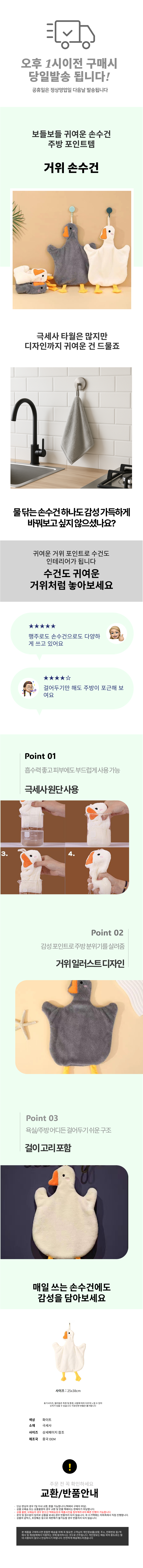고리 거위 손수건 핸드타월 주방수건 행주 휴대용