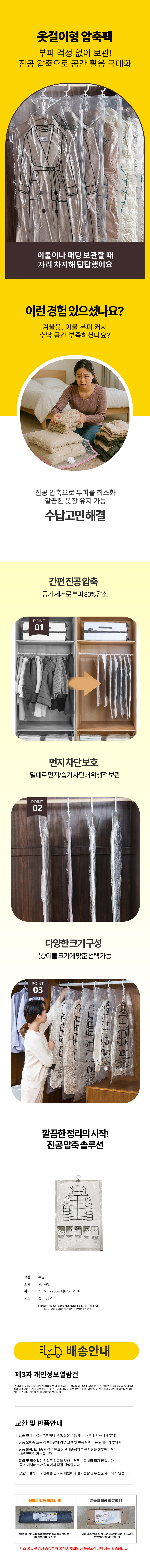 밸브형 진공 압축백 대형 투명 의류 보관 비닐팩