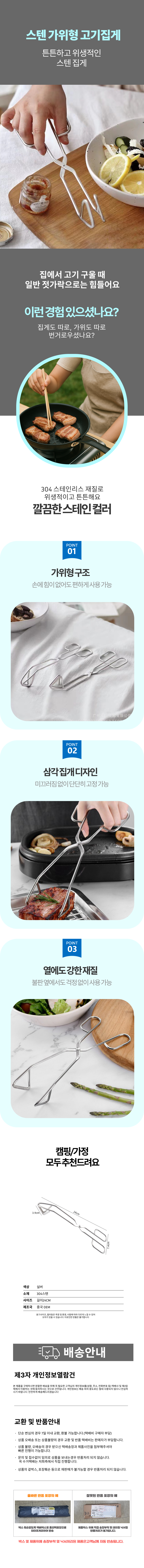 주방 캠핑가위 집게 304 재질 스텐 고기집게 삼각