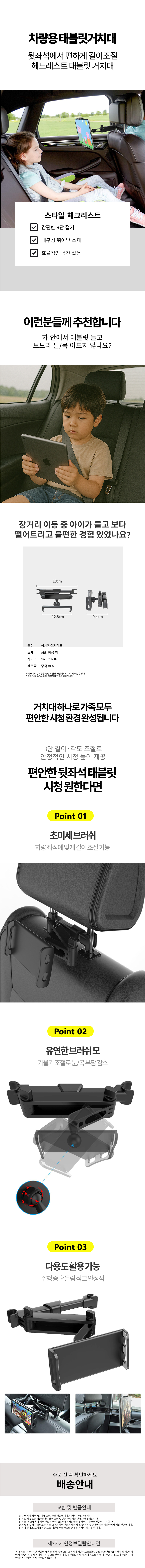 길이조절 3단 헤드레스트 뒷좌석 차량 태블릿 거치대