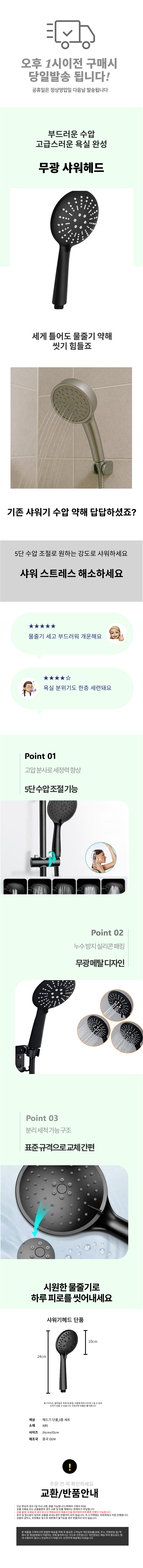 무광 욕실 블랙 샤워헤드 교체 5단 샤워기 수압상승