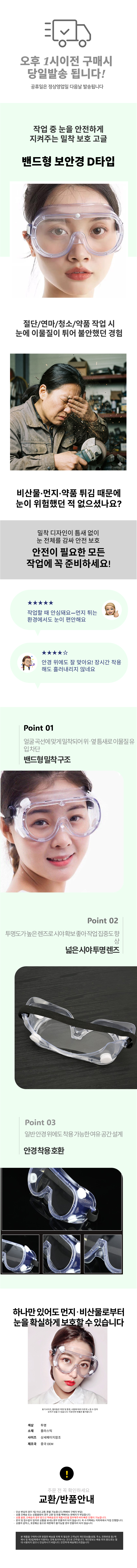 밴드형 고글 보안경 D타입 바람 안면보호