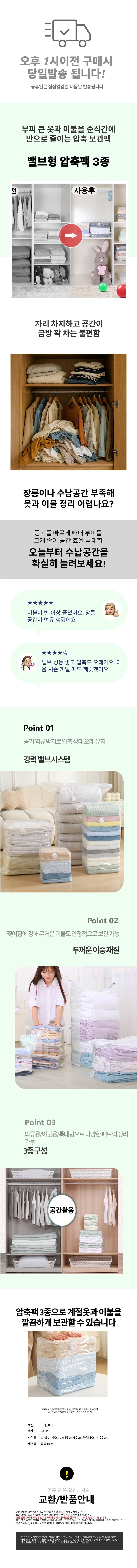 이불 밸브형 압축팩 3종 파우치 손으로압축