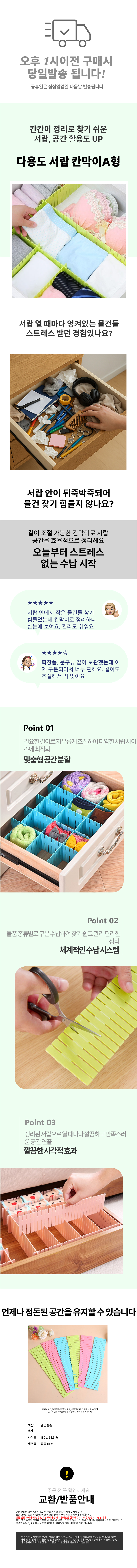 길이 조절 서랍정리칸막이 A형 화장품 길이조절