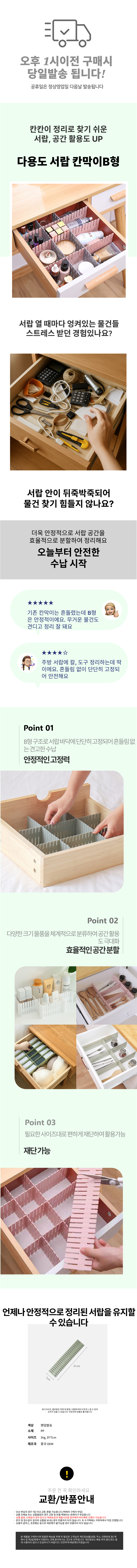 길이 조절 서랍정리칸막이 B형 책상 수납칸막이