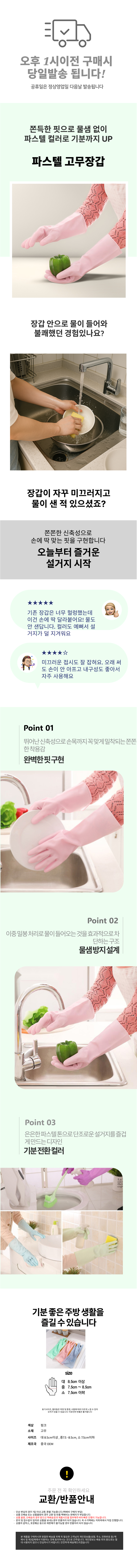 파스텔 고무장갑 식당 설거지 화장실 위생장갑
