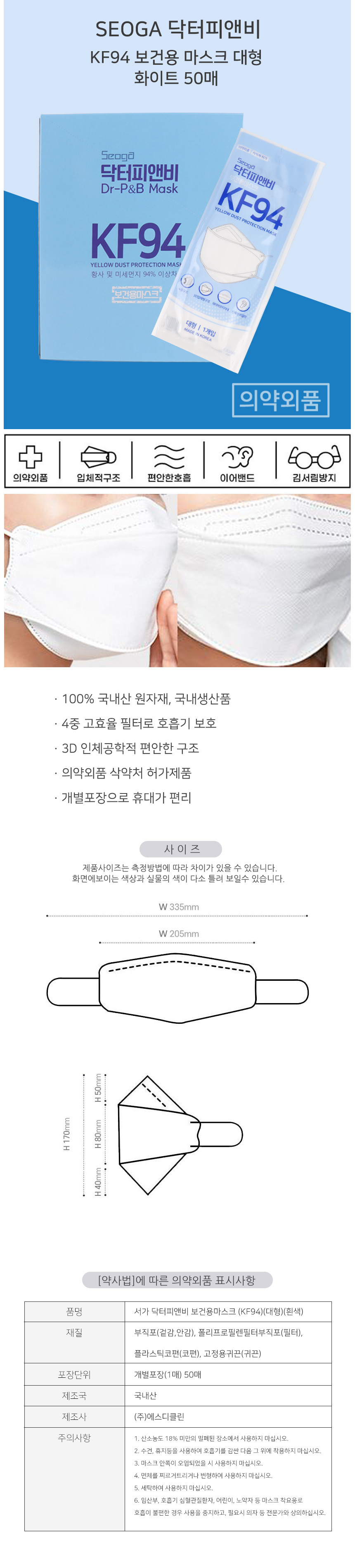 서가 닥터피앤비 KF94 마스트 대형 화이트 50매