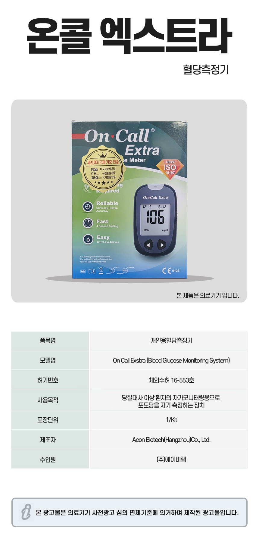 | 의료기기법상 허가·신고 번호/광고사전심의필 유무 | 허가번호:체외 수허 16-553호 / 광고사전심의필:무 |