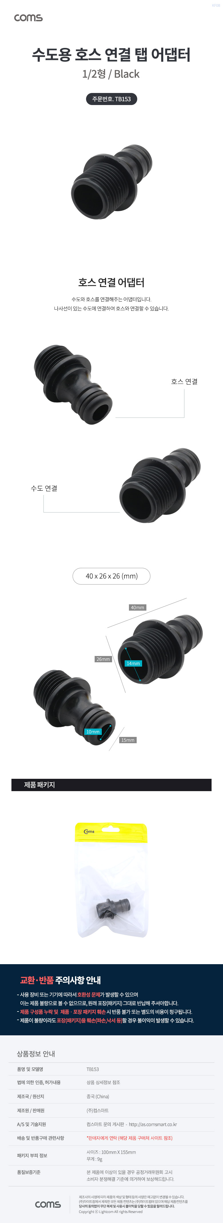수도용 탭 어댑터 / 수도 연결 / 호스 연결 / 수도 커넥터 / 1/2형