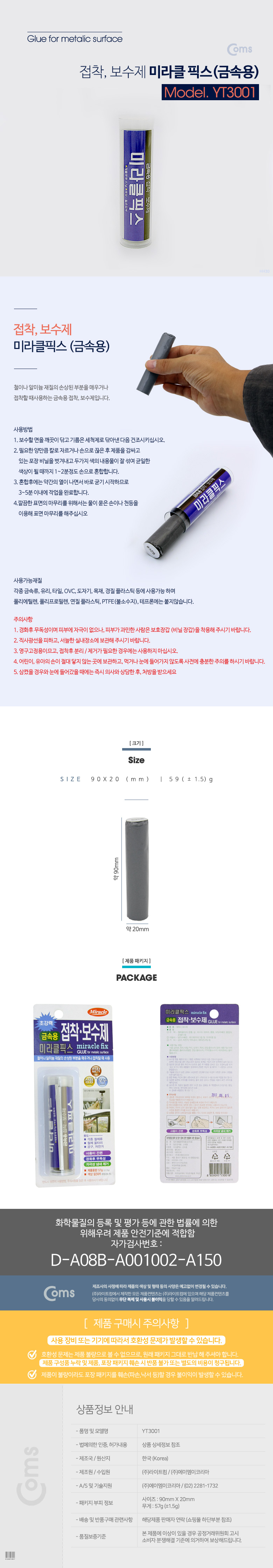 AME코리아 미라클픽스 접착/보수제 (금속용) 57g YT3001