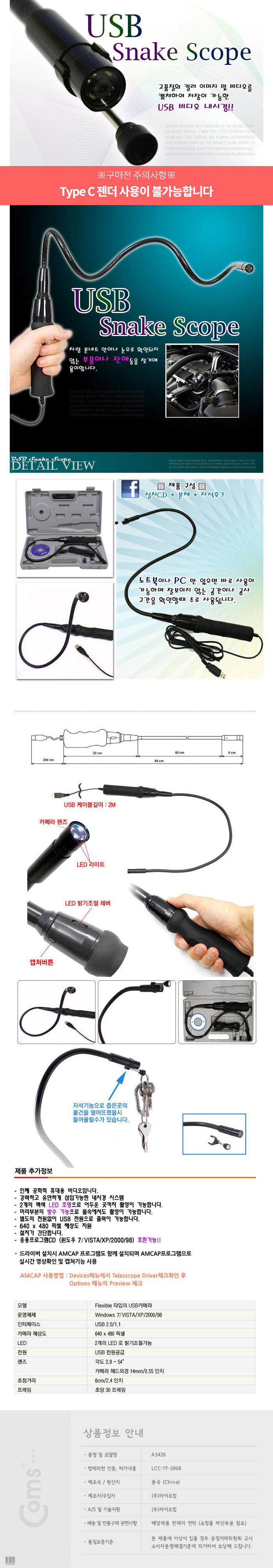 내시경 탐지용카메라 - 캡쳐기능/Flexible/2LED/2M/USB TF-2808