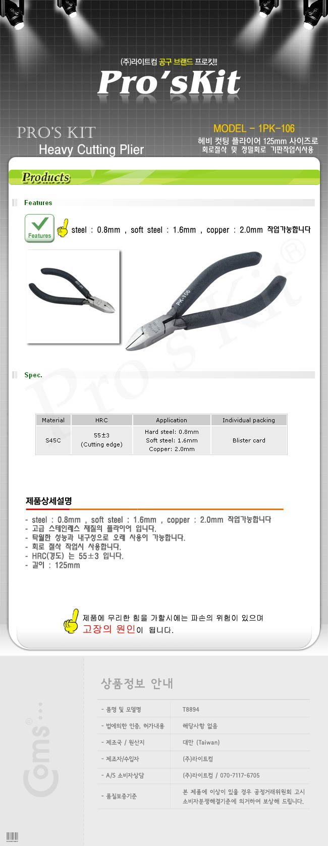 고강도 니퍼/정밀한작업가능/125mm 1PK-106