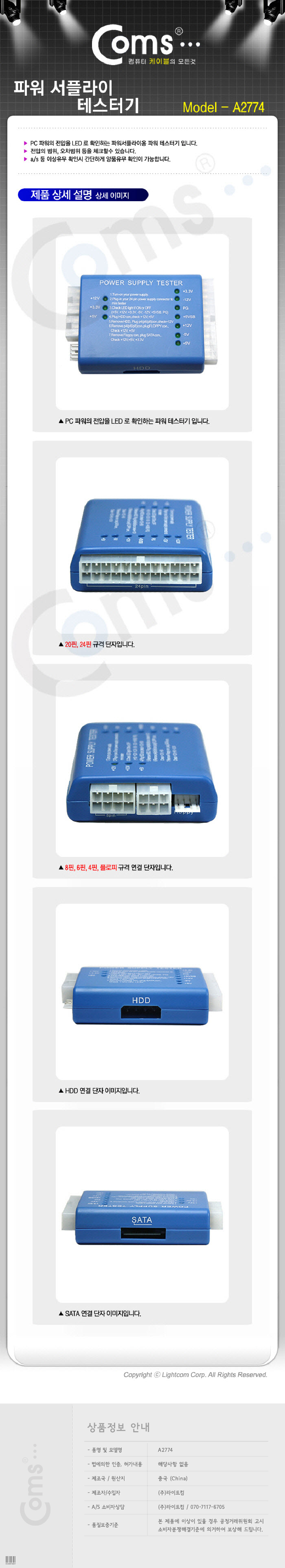 파워서플라이 테스터기/PC전압을 LED로 확인/이상유무 진단 A2774