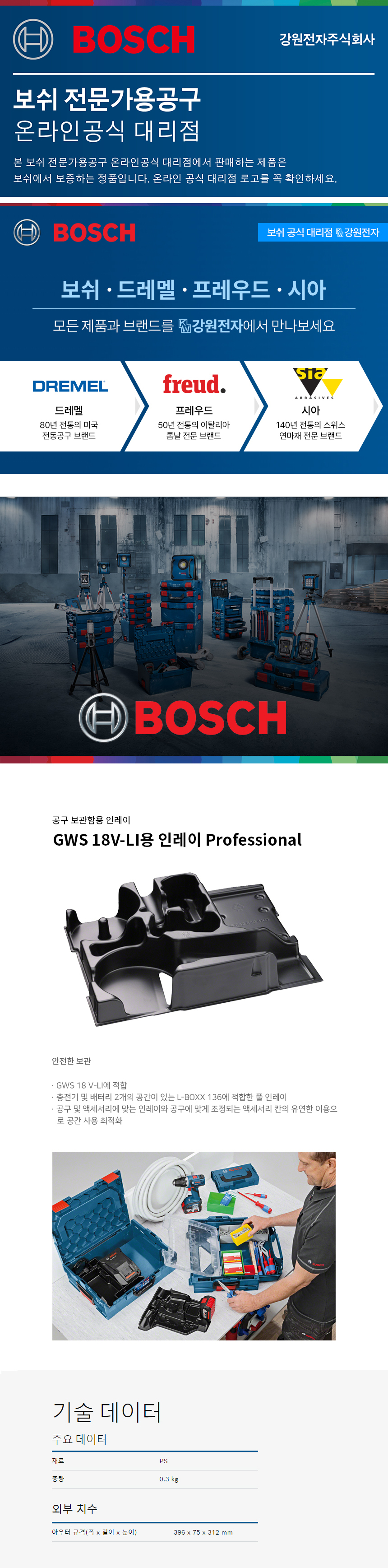 Bosch 보쉬 공구보관함용 풀 인레이 GWS 18V-LI용 L-BOXX 136