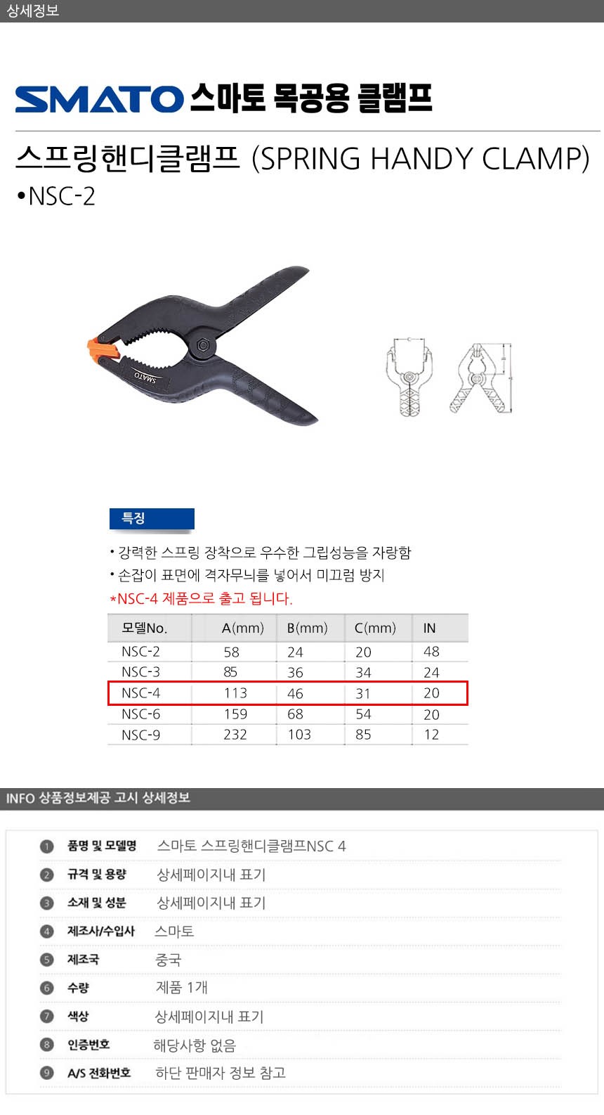 스마토 스프링핸디클램프NSC 4