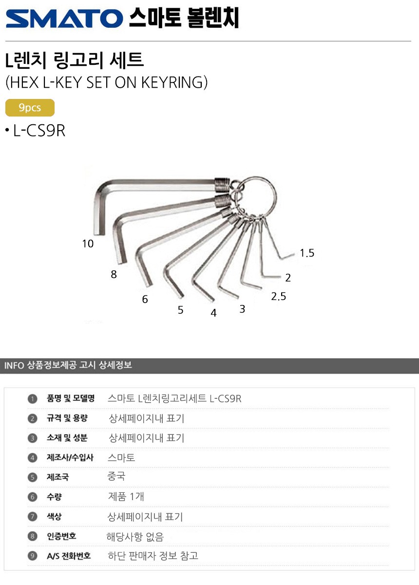 스마토 L렌치링고리세트 L-CS9R