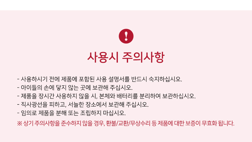 • 구성품을 분실하였거나 취급 부주의로 인한 파손/고장/오염된 경우에는 취소/반품이 제한됩니다.