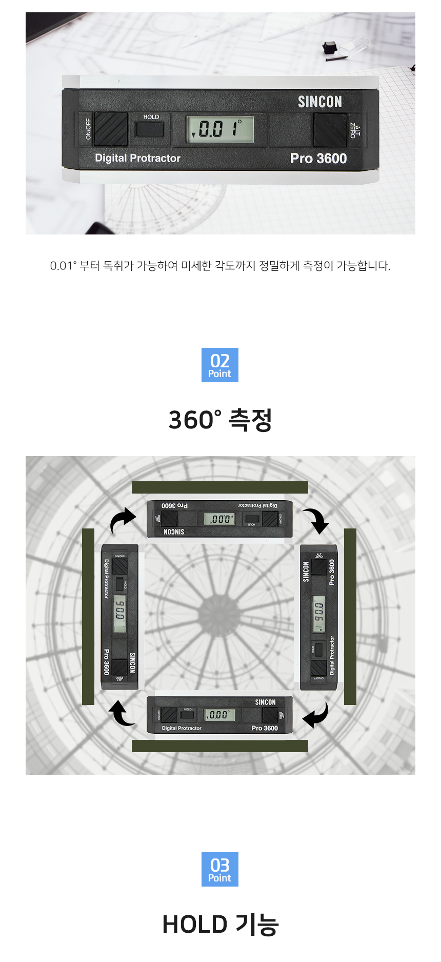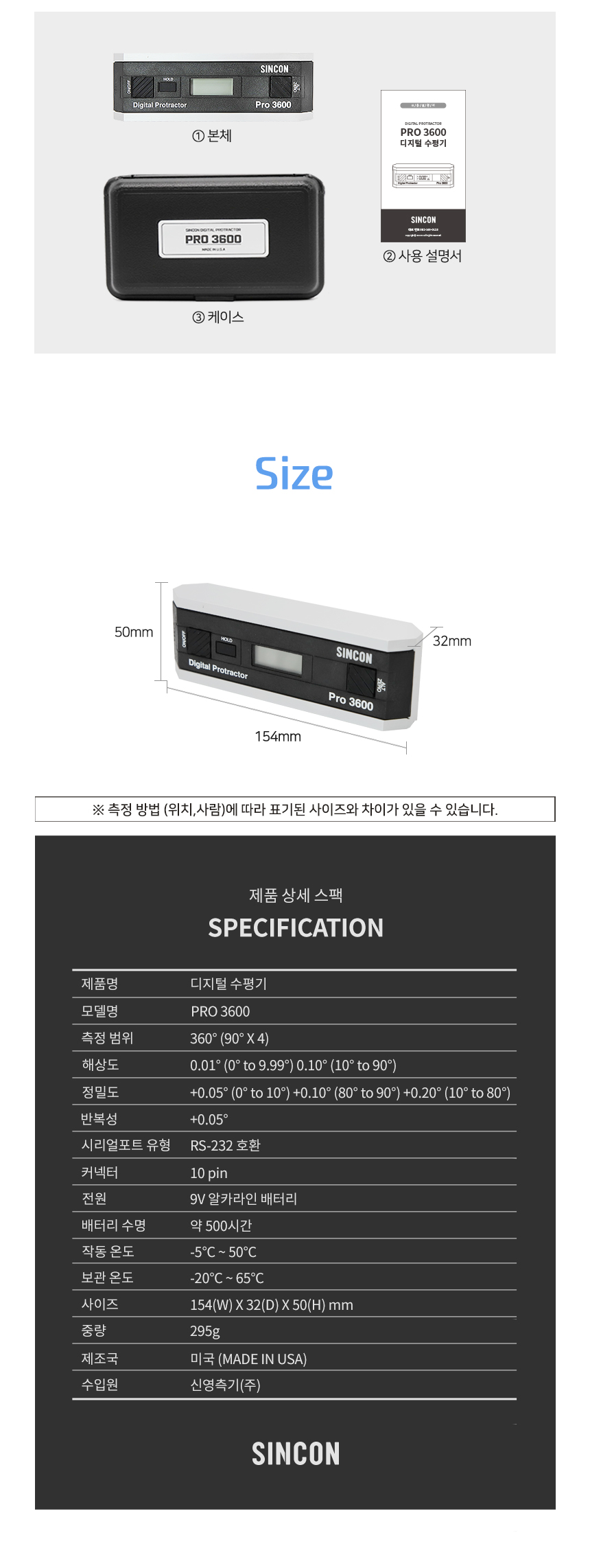 SPI 초정밀미니디지털경사계(0.01˚) PRO3600