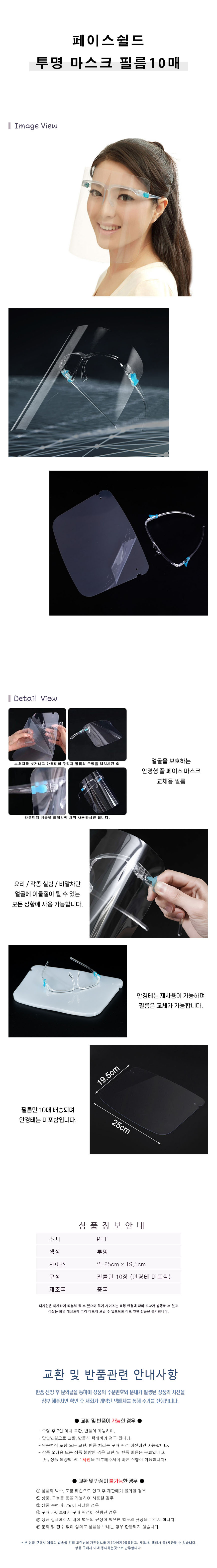 페이스쉴드 안면보호 투명마스크 필름만 10매