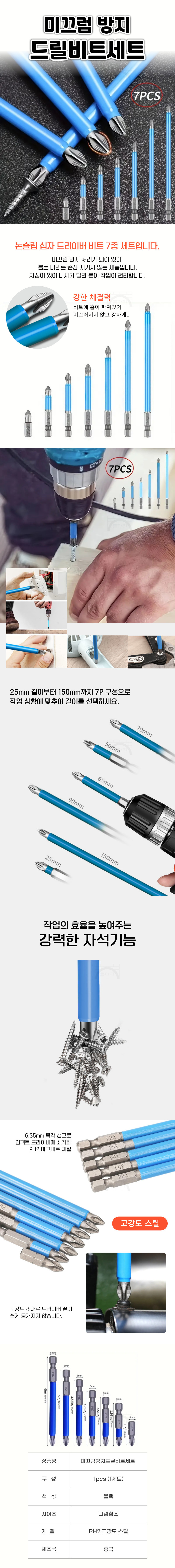 고경도 미끄럼방지 자석 드릴 비트 7종 1세트