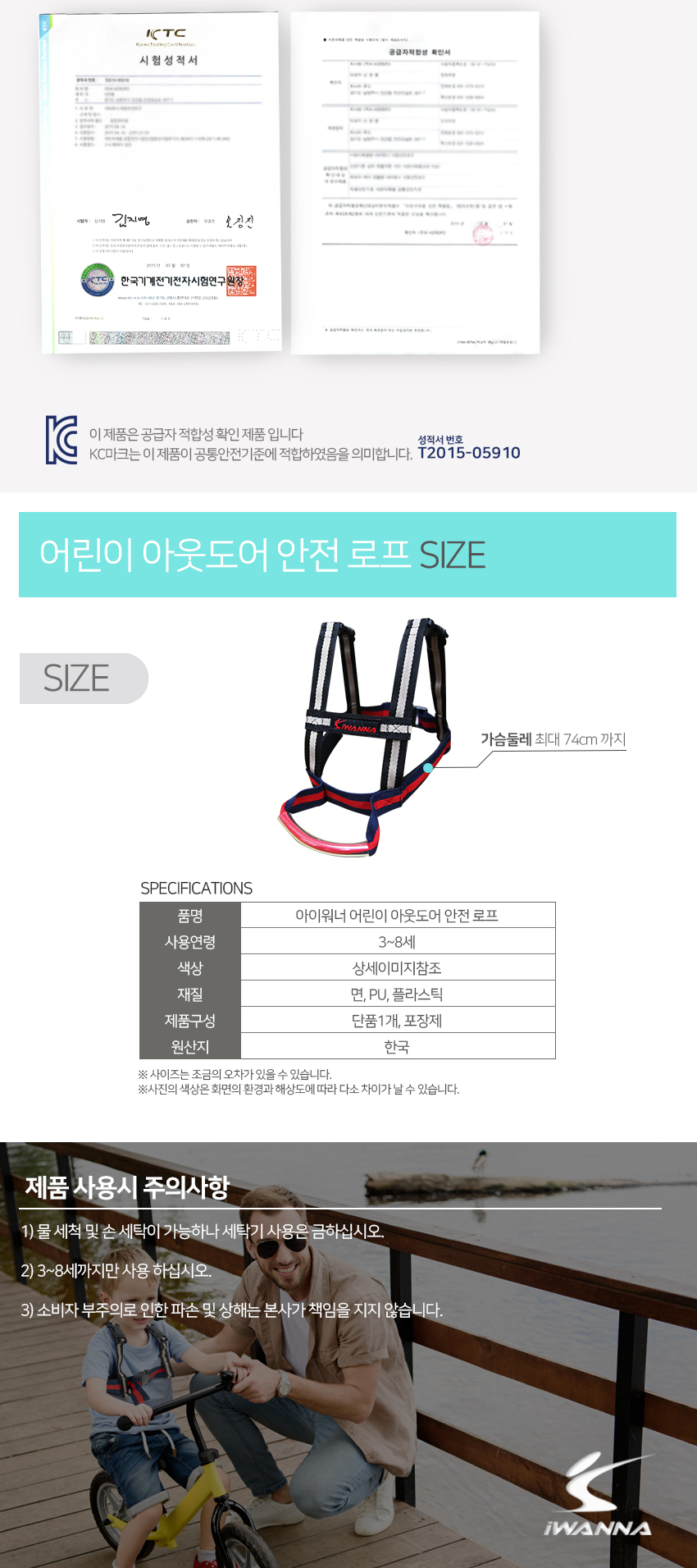 | 품명 및 모델명 | 품명:아이워너 어린이 아웃도어 안전로프 / 모델명:아이우너 어린이 아웃도어 안전로프 |