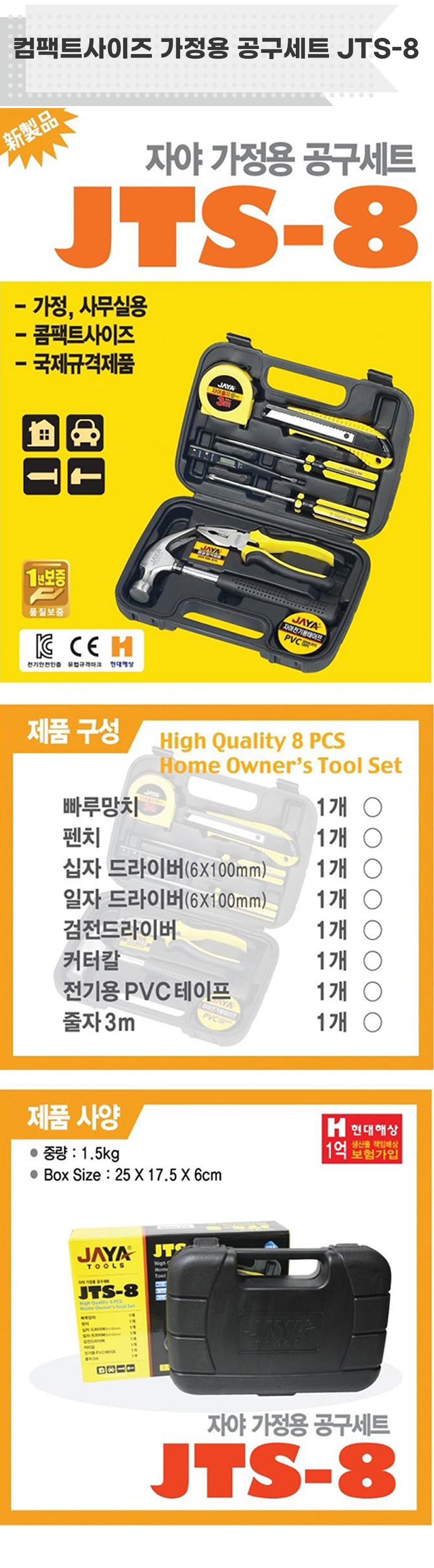 컴팩트사이즈 가정용 공구세트 JTS-8 수공구세트