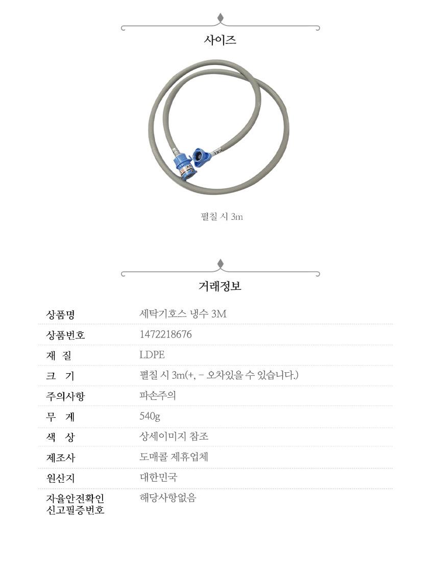 세탁기 급수 호스 3M x2개 호스릴 급수호스