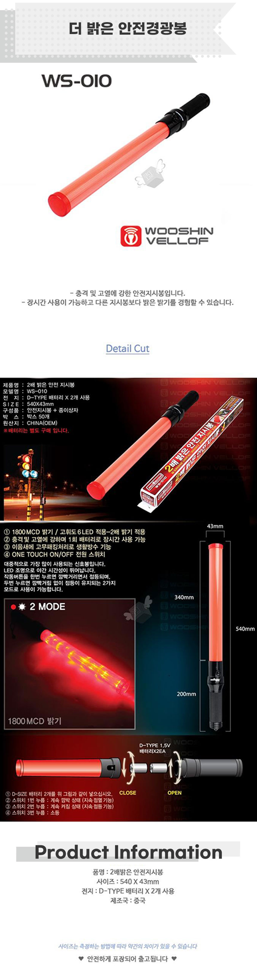 더 밝은 야간 안전경광지시봉 x2개 안전경광봉 경광봉