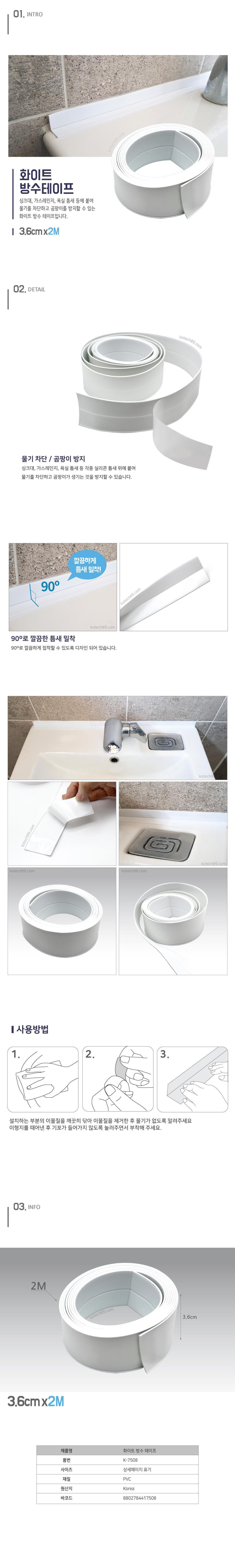 싱크대 욕실 틈새 방수 테이프 화이트 3.6cmx2m X4개