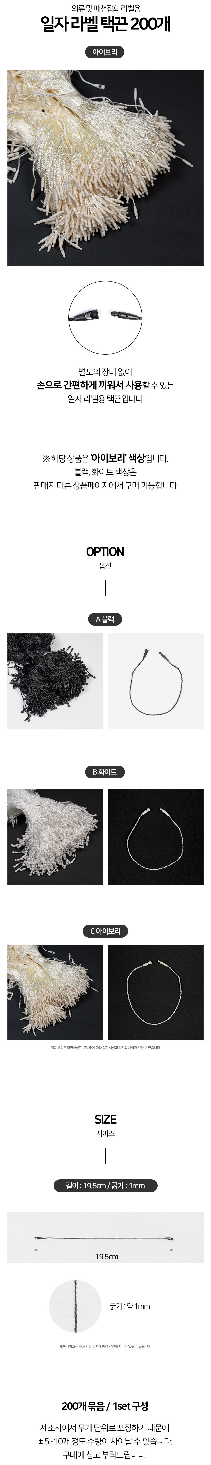 일자 라벨끈 택끈 행택고리 200개입 아이보리