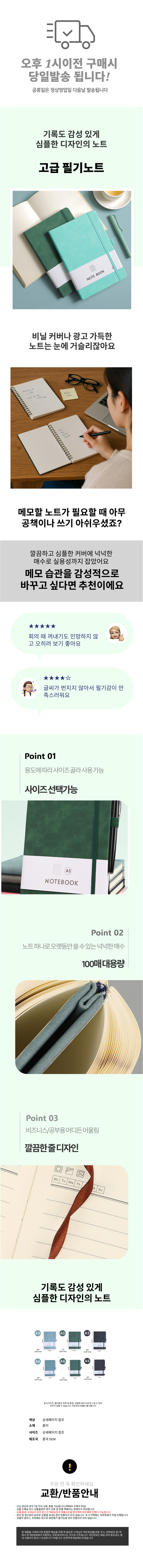 기록 필기 100매 A6 A5 메모 연습장 모던 오피스 양장