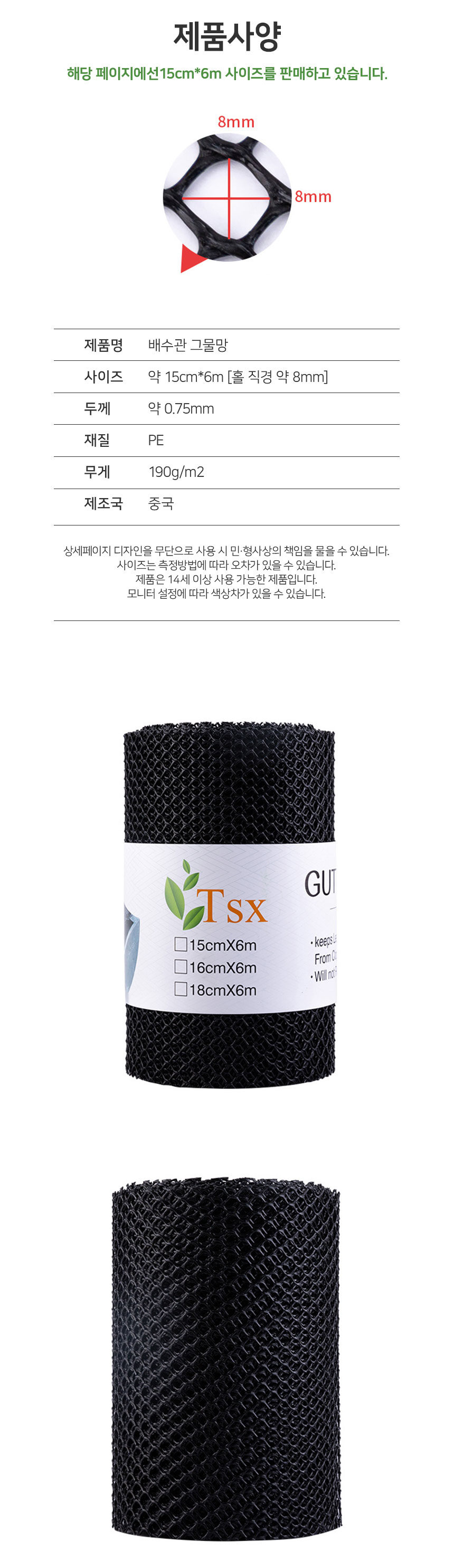 낙엽 옥상 쓰레기 배수구 방지망 그물망 거름망 15cm