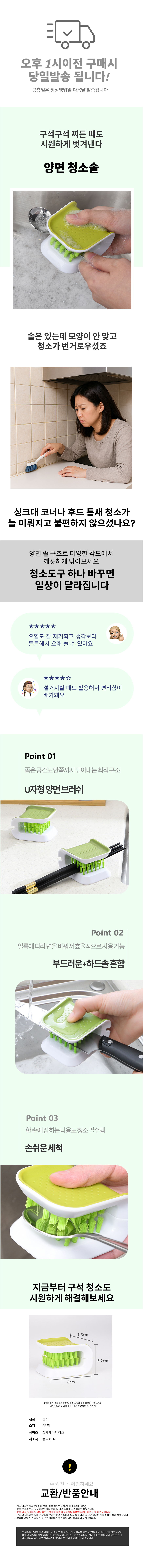 청소솔 양면 세척솔 청소브러쉬 청소도구 싱크대
