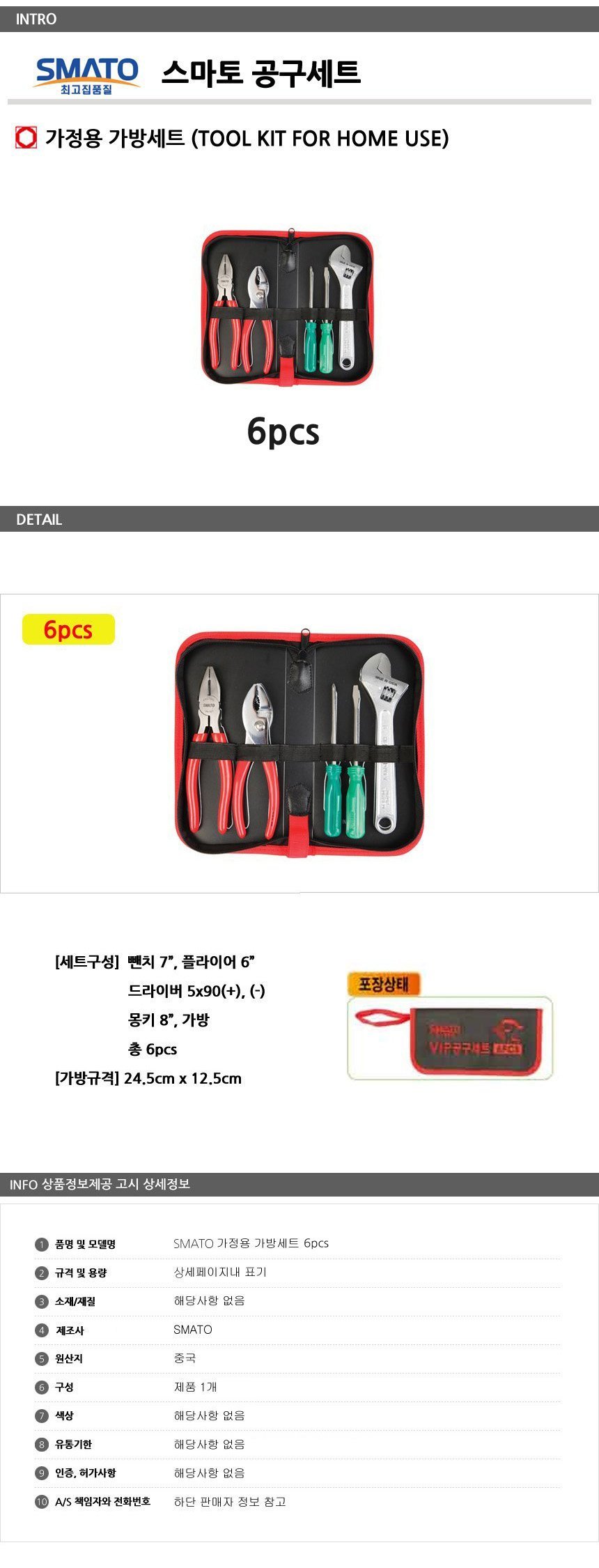 스마토 가정용 공구세트 가방형 소형 6pcs