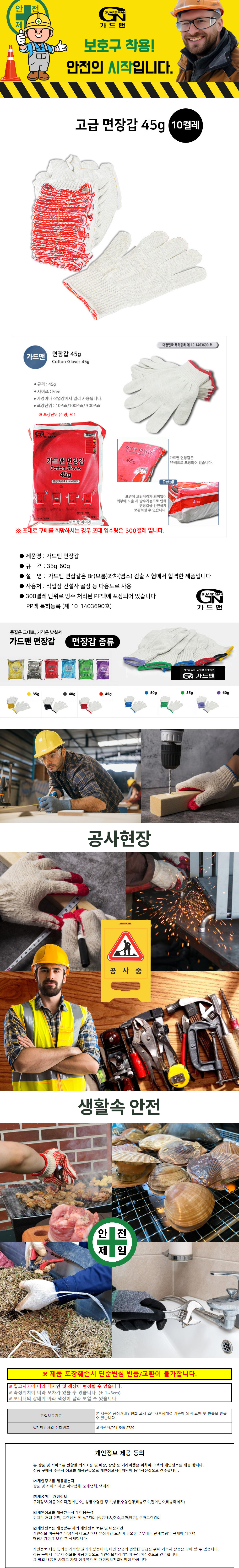 GUARDMAN 고급 면장갑 45g (10개입) 목장갑 작업 안전장갑