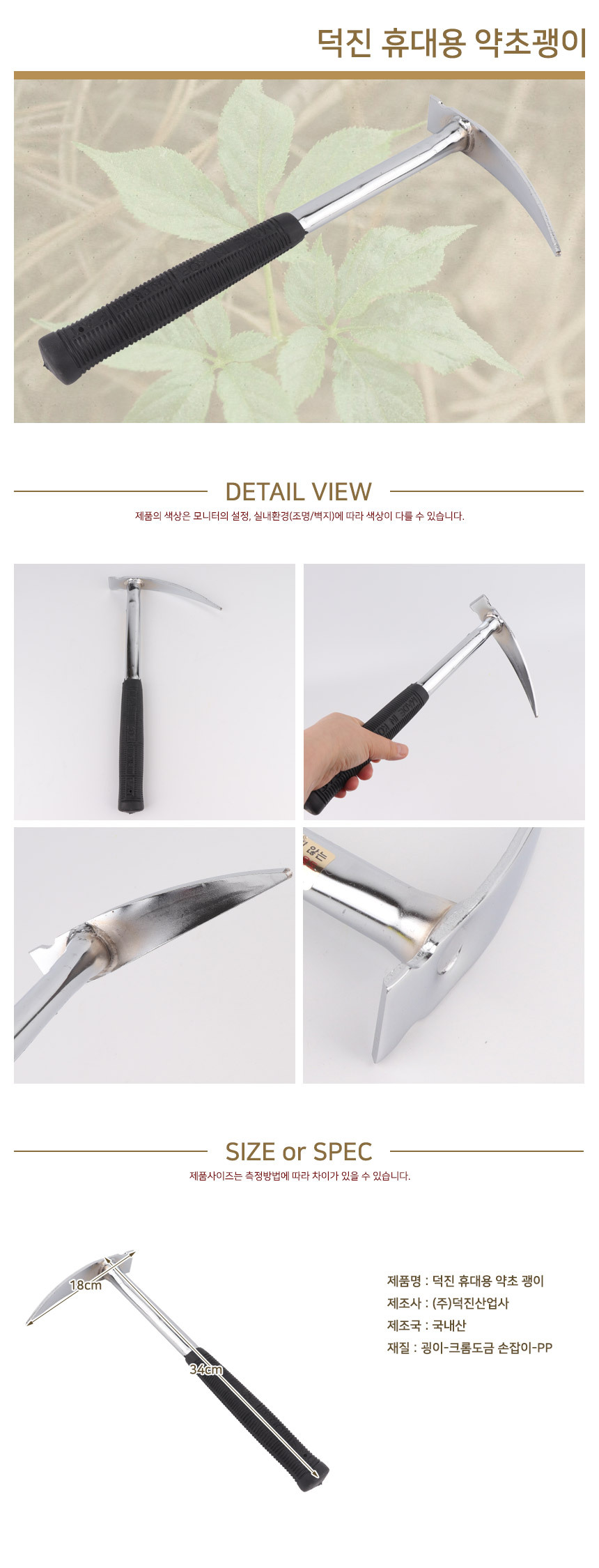 덕진 휴대용 곡괭이 텃밭농사 주말농장 농기구
